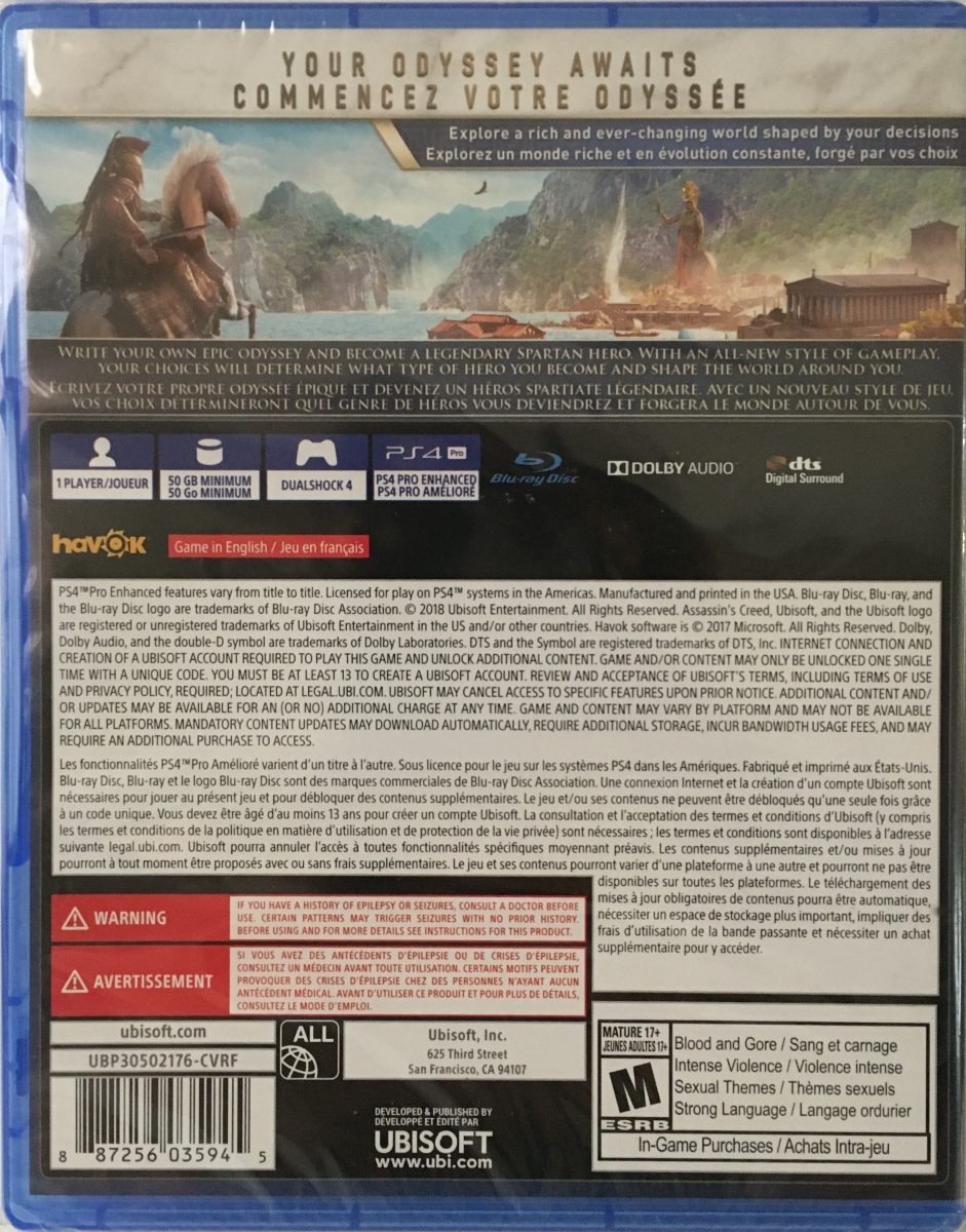 Assassin’s Creed Odyssey for PS4 is a massive action‑RPG set in Ancient Greece during the Peloponnesian War. You begin as a mercenary — choosing between two playable protagonists — and journey across a vast open world of islands, mountains, and seas as you uncover your mysterious past. The game mixes exploration, land‑ and sea‑based combat, branching dialogue and quests, and meaningful choices that shape your story and the fate of Greece. Along the way you fight in huge battles, upgrade your gear and abilities, hunt, explore ruins and shipwrecks, and face both human enemies and mythic threats.