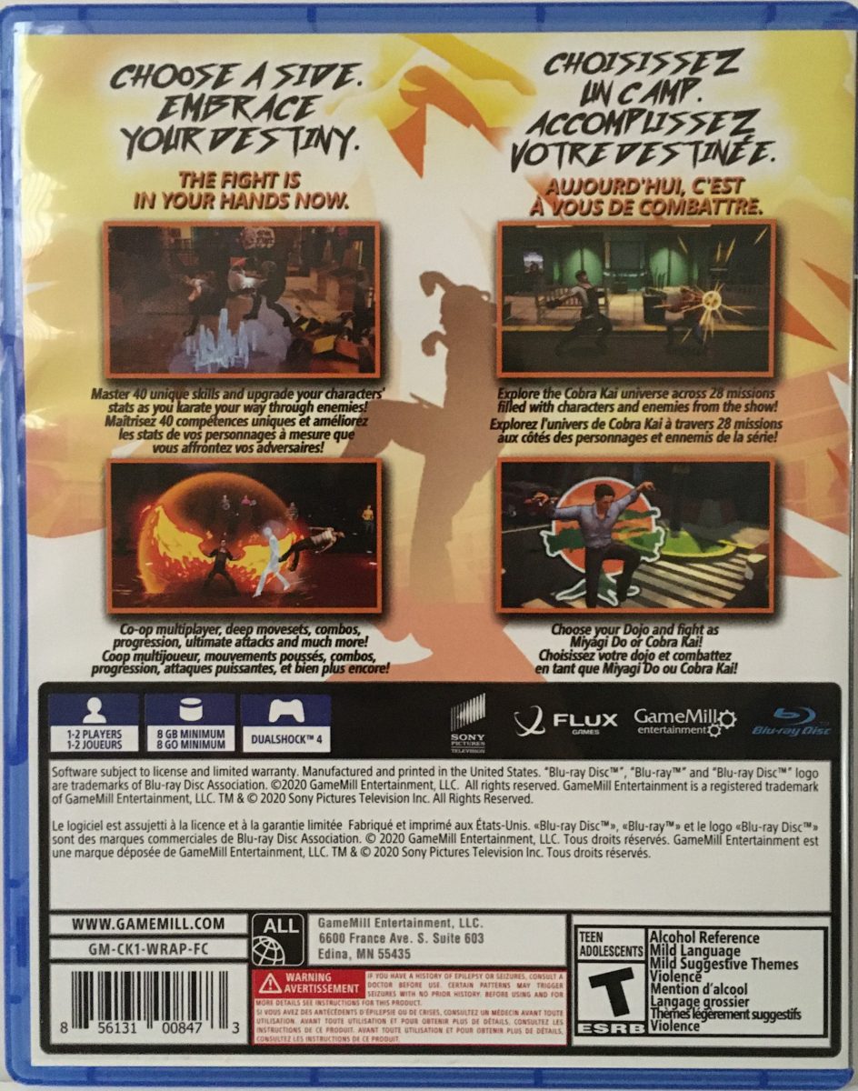 Cobra Kai: The Karate Kid Saga Continues PS4 is an action‑adventure beat ’em up inspired by the popular Cobra Kai series. Set 34 years after the original 1984 All‑Valley Karate Tournament, the game lets you choose between the Miyagi‑Do and Cobra Kai dojos, each with its own storyline, characters, and missions. You can master combos and unique skills, swap between characters mid‑fight, progress your dojo’s abilities, and battle through 28 missions filled with familiar faces and enemies from the show. It blends RPG‑like progression with classic side‑scrolling combat.