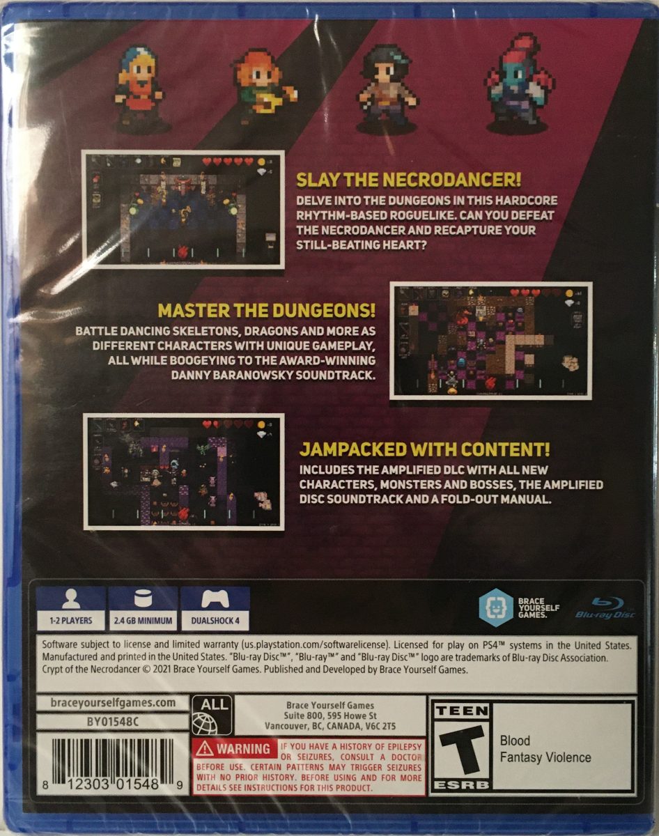 Crypt of the NecroDancer PS4 is a unique rhythm-based dungeon crawler where players explore procedurally generated dungeons while moving and attacking to the beat of the music. You choose from different characters, collect gold and items, battle monsters, and upgrade abilities, all while keeping perfect timing to the soundtrack. It combines strategic roguelike gameplay with rhythmic action for a challenging and addictive experience.