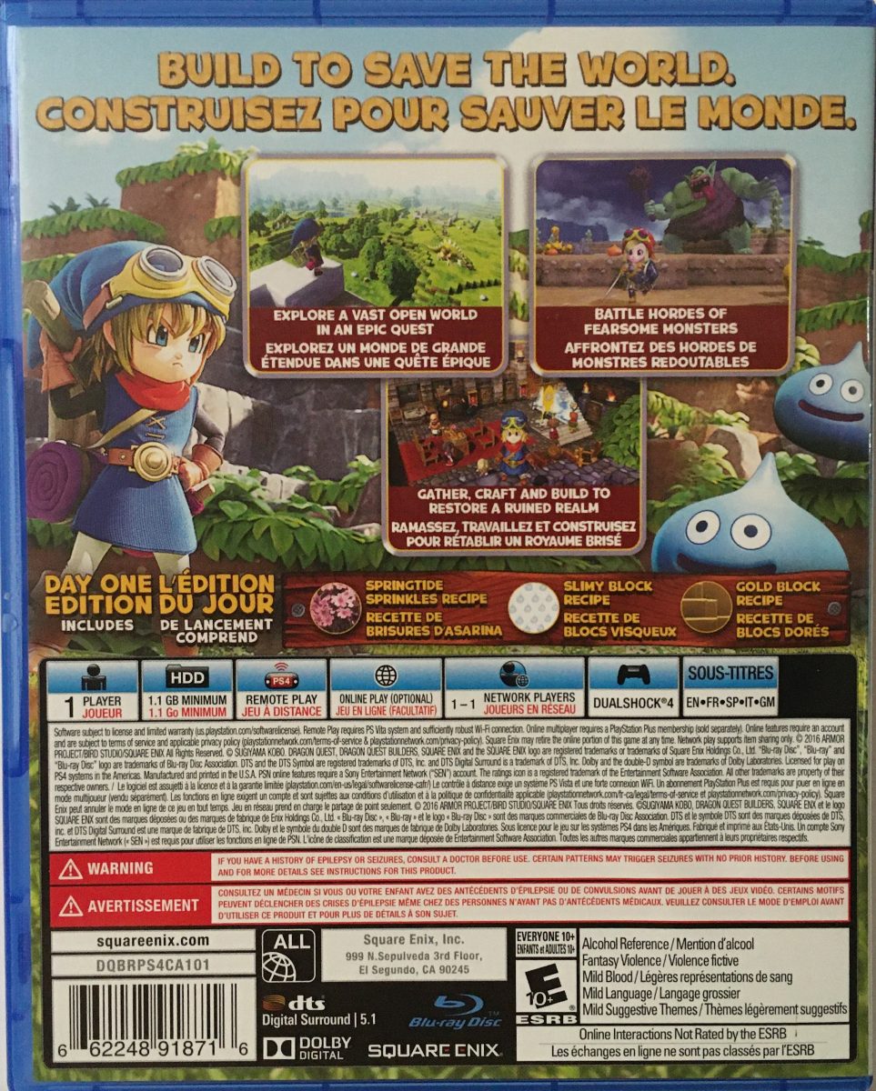 The Dragon Quest Builders Day One Edition for PlayStation 4 is a unique blend of action RPG and sandbox building, set in the iconic Dragon Quest universe. Released on October 11, 2016, this edition includes exclusive in-game content and offers a fresh take on the classic Dragon Quest series.