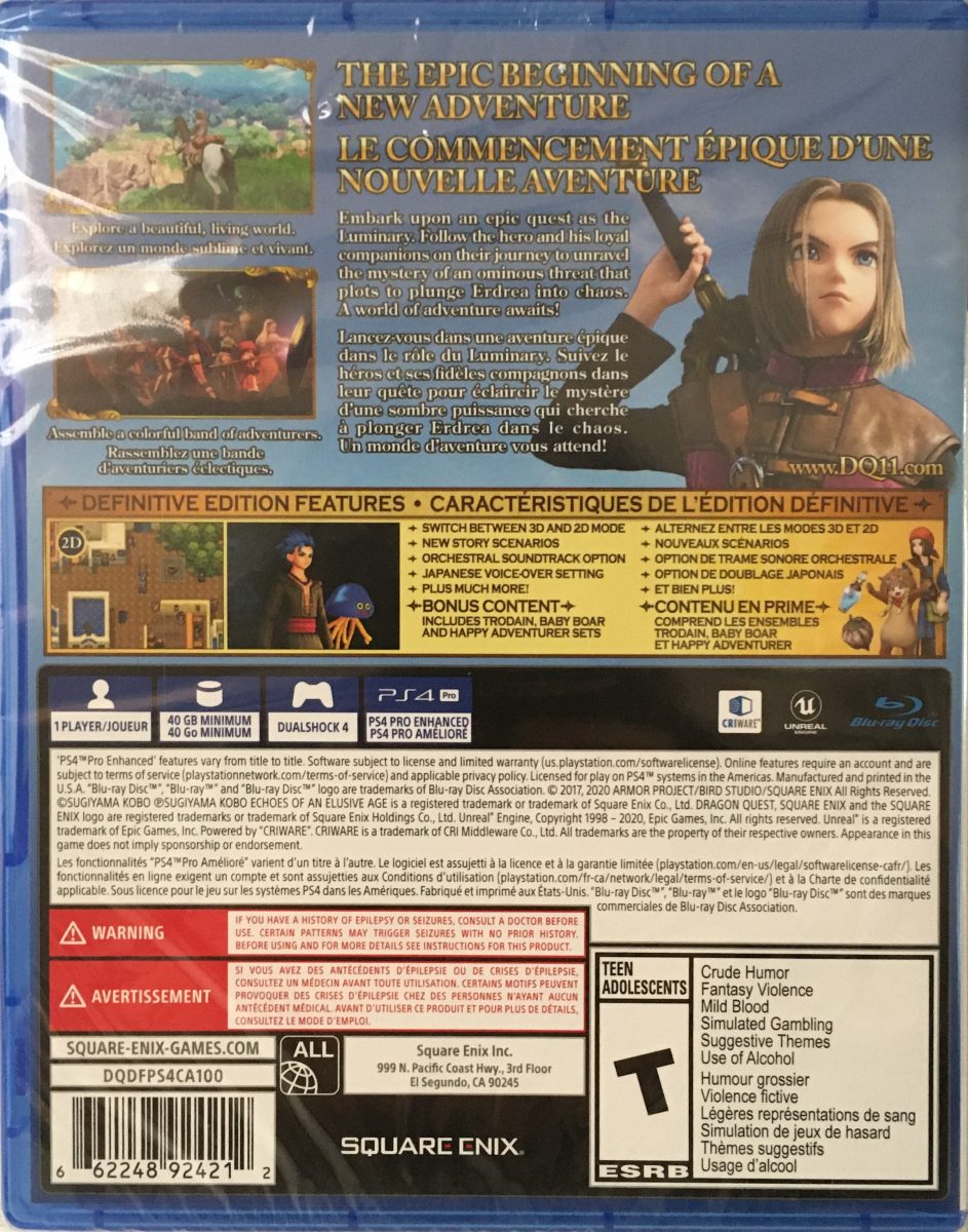 Dragon Quest XI S: Echoes of an Elusive Age – Definitive Edition for PS4 is an expanded and enhanced version of the acclaimed JRPG where you take on the role of the Luminary, a young hero revealed to be the reincarnation of a legendary savior. As you travel across the vibrant world of Erdrea, you’ll explore towns, dungeons, and diverse landscapes while engaging in strategic turn-based battles, completing quests, and forming bonds with a memorable cast of companions. The Definitive Edition adds extra character-specific story content, the ability to switch between 3D and classic 2D graphic modes, options for either the original or orchestral soundtrack, and English or Japanese voice acting, giving players a richer and more customizable experience.