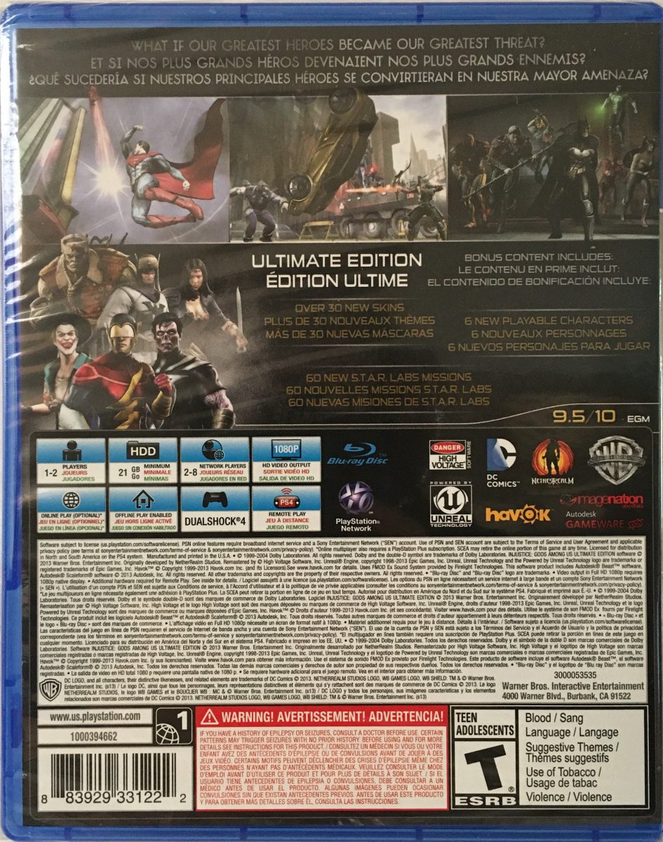 Injustice: Gods Among Us Ultimate Edition for PS4 is a fighting game set in an alternate DC Universe where Superman has become a tyrant and Batman leads a resistance. This definitive edition combines the base game with all downloadable content, offering an expanded roster of over 30 playable heroes and villains, including extra characters, skins, and missions. Players can experience a cinematic story mode with moral choices, complete S.T.A.R. Labs challenges, and engage in both local and online multiplayer battles, making it the complete and most feature-rich version of the original game.