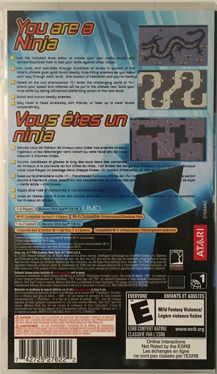 N+ PSP is a fast-paced, physics-based platformer where players control a nimble ninja navigating intricate levels filled with deadly traps and enemies. With precise controls, challenging puzzles, and countless ways to complete each stage, it offers addictive gameplay that tests reflexes, strategy, and patience in a sleek, minimalist world.