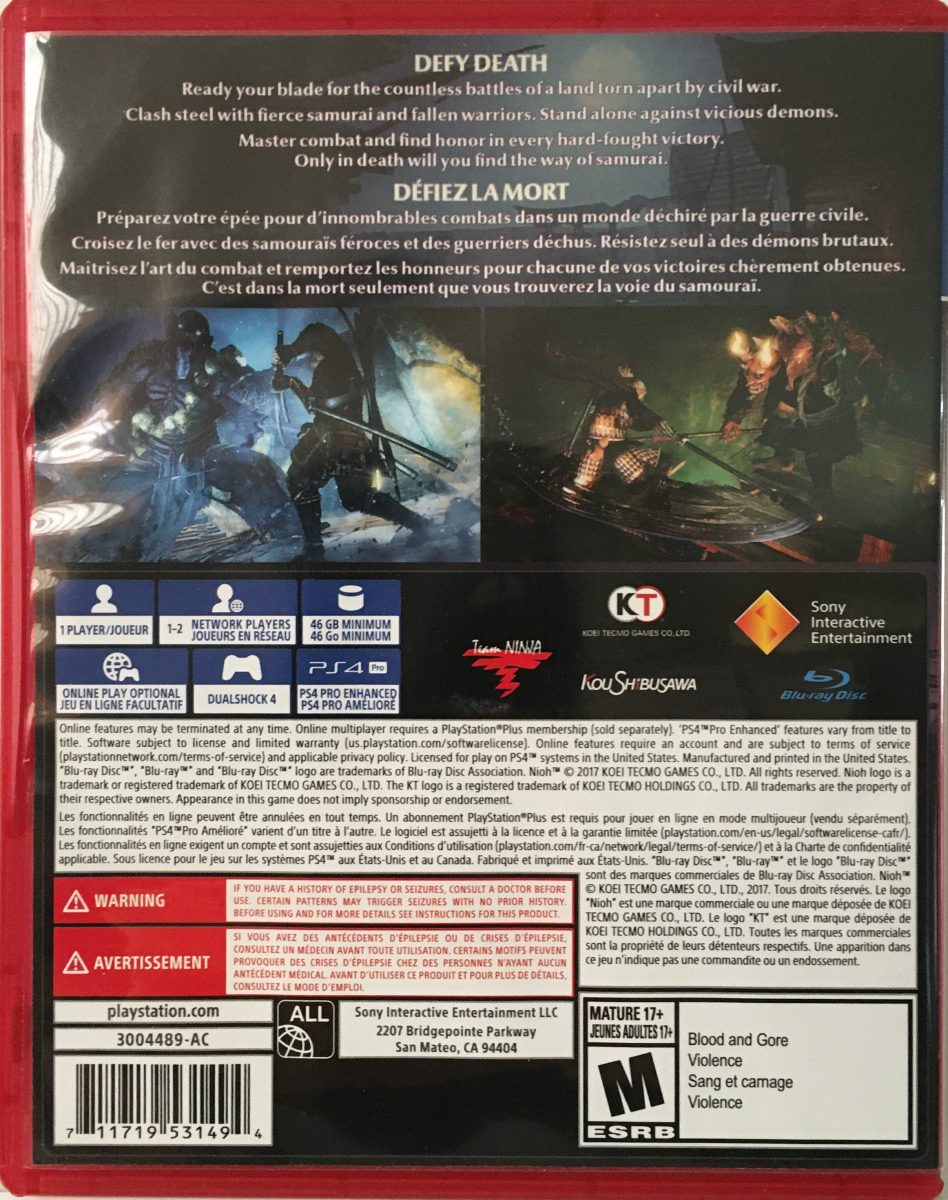 Nioh – PlayStation Hits PS4 is a challenging action RPG set in a dark, fantastical version of 16th-century Japan. Players take on the role of William Adams, a Western samurai, battling both human foes and supernatural yokai using a variety of authentic weapons like katanas, axes, and spears. The game emphasizes fast-paced, precise combat, requiring mastery of dodging, parrying, and stance-based attacks. Explore beautifully detailed locations inspired by historical Japan, complete missions, and collect loot to upgrade your gear and skills. This PlayStation Hits edition offers the same intense gameplay and deep progression as the original, making it a must-play for fans of tactical action and challenging RPG experiences.
