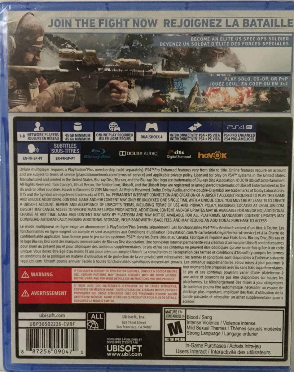 Tom Clancy’s Ghost Recon Breakpoint is an online tactical shooter video game developed by Ubisoft Paris and published by Ubisoft. The game was released worldwide on 4 October 2019 for PlayStation 4, Windows, and Xbox One, and on 18 December 2019 for Stadia. The game is the eleventh installment in the Tom Clancy’s Ghost Recon franchise and is a narrative sequel to the 2017 video game Tom Clancy’s Ghost Recon Wildlands.